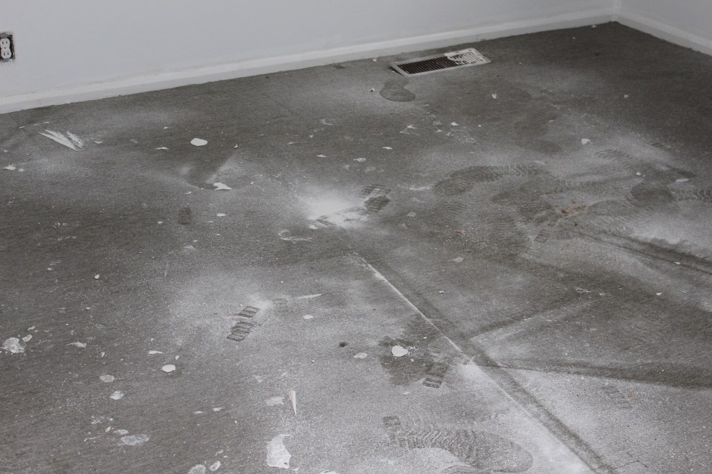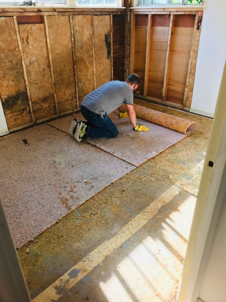 Next we swept the floors, picked up trash and Danny used a ShopVac to vacuum the floors to clear any loose debris. If you happen to leave sharp particles behind, it could cause uneven wear or holes in the new floors!