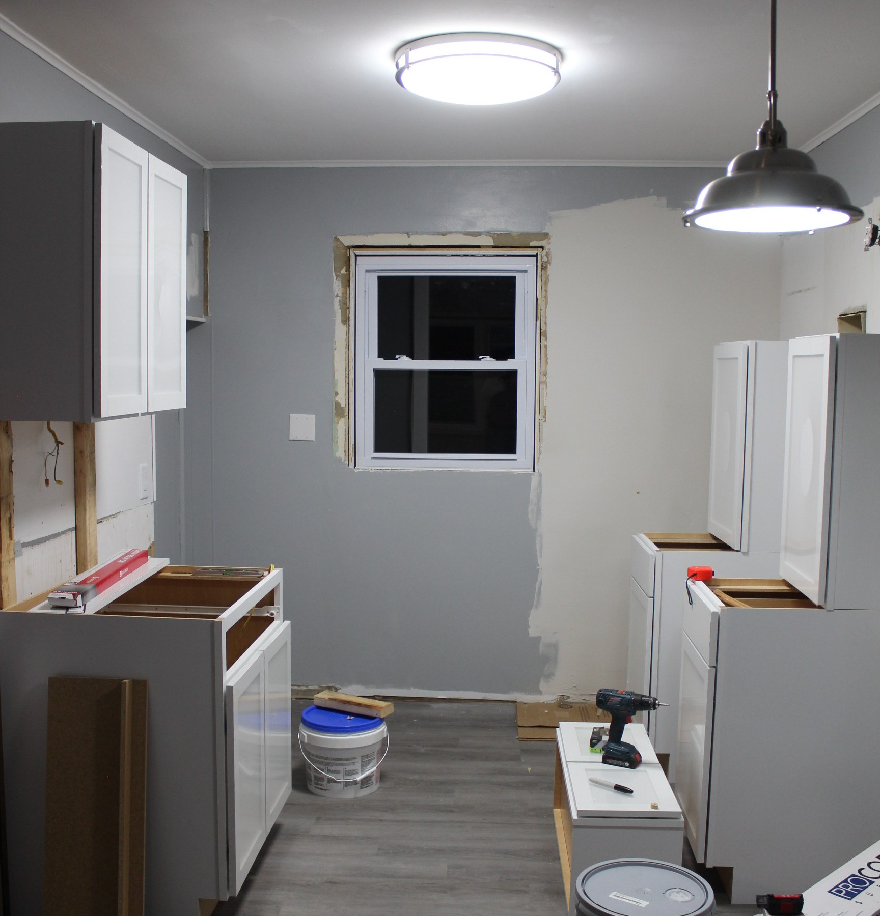Come to find out, they only ordered laminate tops not the actual COUNTER?! On top of the counters being put off another 3 weeks out, we’re a few inches shorter than we’d like them to be. We could have went with 24in cabinets, but instead we ordered the same size cabinets that were used in to original kitchen, which were 18in.