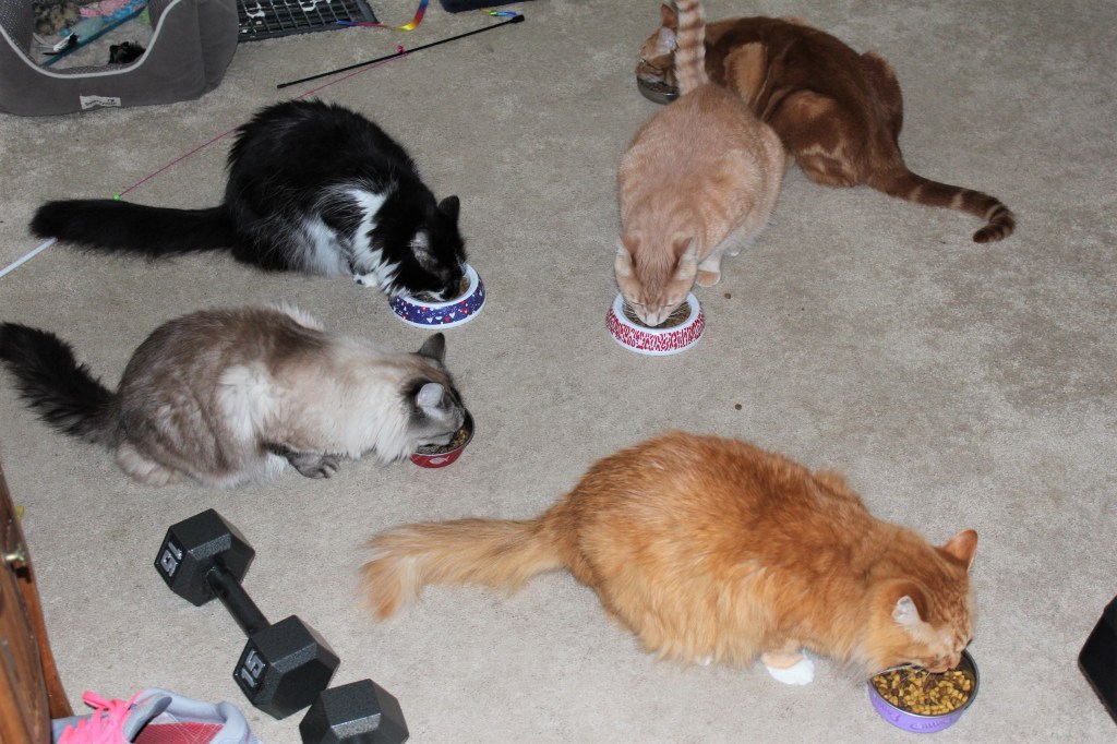 1. Let the dogs out. Feed & water everyone. Take care of the litter-boxes.