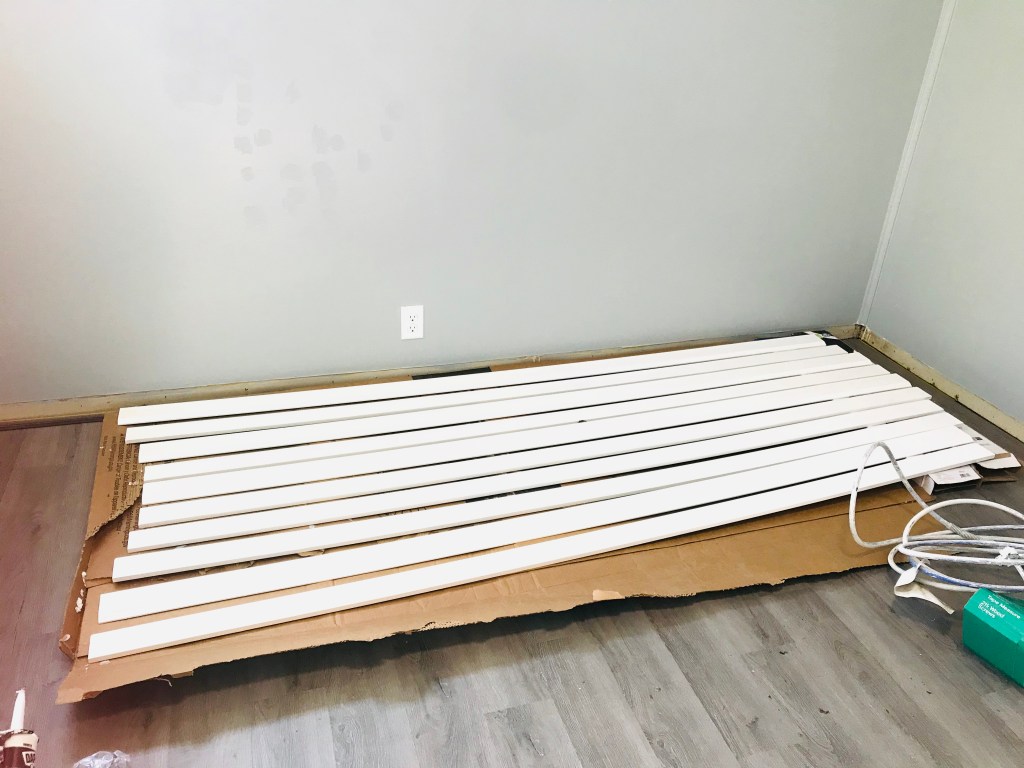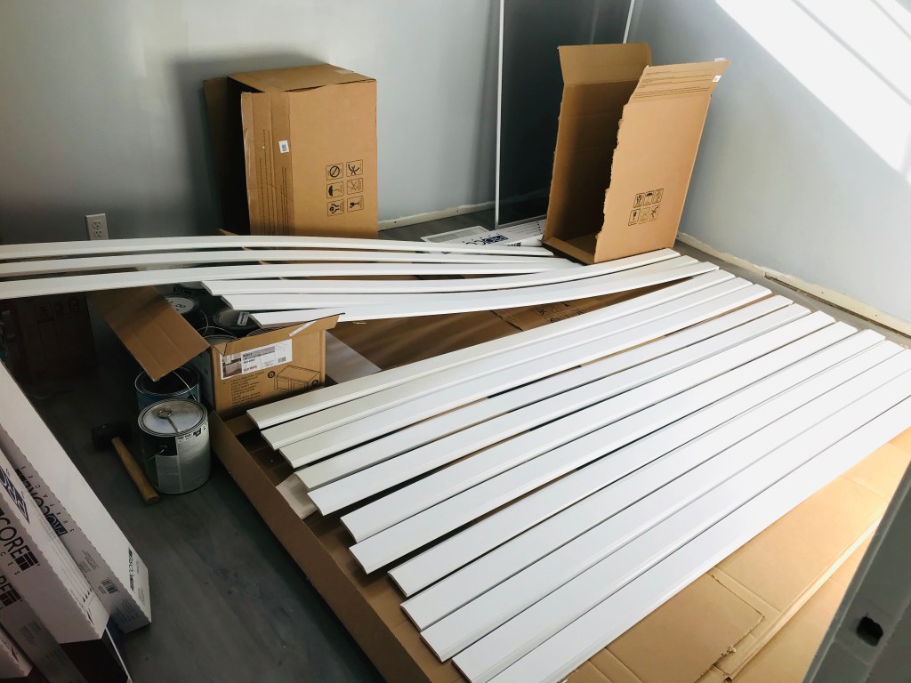 In beginning the painting, I started on the ceilings, moved to the walls and closets, to finishing with the window frames, baseboards, and doors. Painting is never really finished. There is always touch ups and something else to paint or caulk. One of our previous posts, mentioned painting baseboards, in this picture, it looks similar to the one below, but they are frames for windows.