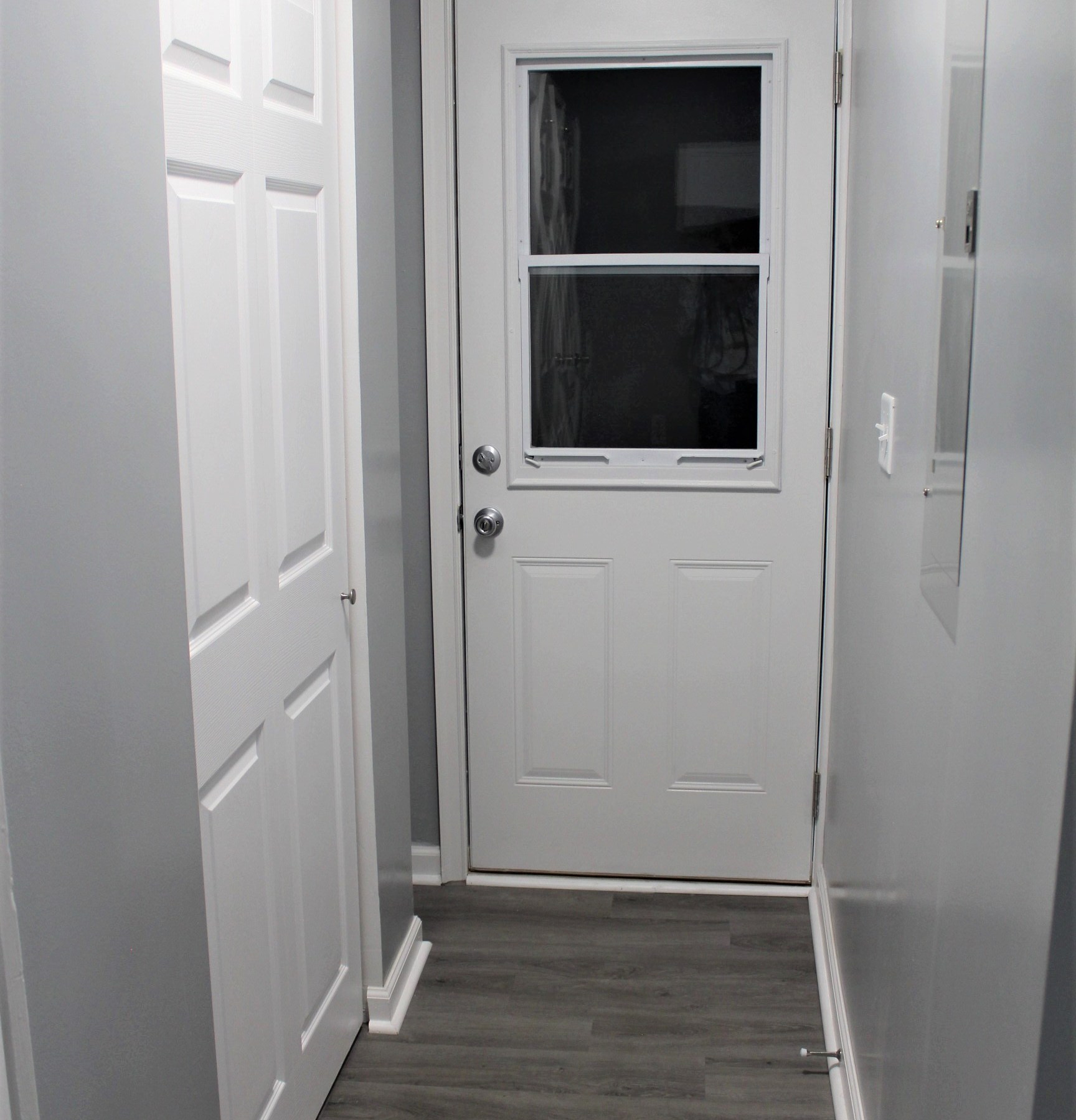 One thing Zella noticed about the back entry of this rental was how wide the hallway was and how small the kitchen space was. So, she “suggested” I build in a pantry closet with shelving to allow for storage space. I want to share how I accomplished this and the end result of this specific process. We believe it would add value to the property, not so much in financial gain, but to the tenant by maximizing the space.
