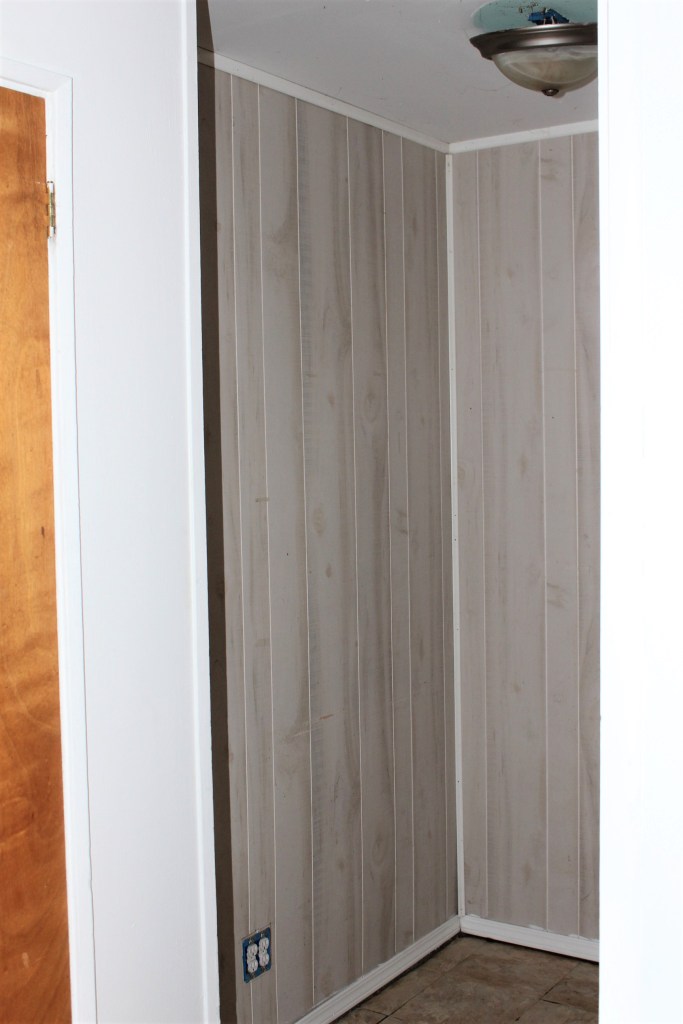 During the planning phase of this project we noticed that we were not going to be able to carry the closet all the way back to the back door. You can see in the after photo that we had to leave a little nook back in the corner in order to leave a little space to be able to change out the back door when that time comes. If we went all the way down, as we intended to, it would make changing out the back door very difficult.