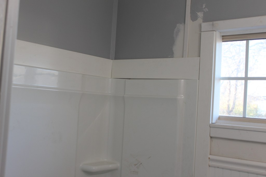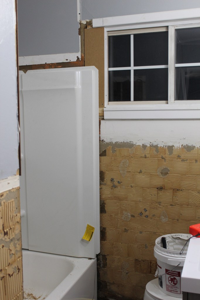 When the bath tub surround was in and the window frame filled out, we had another major problem!
